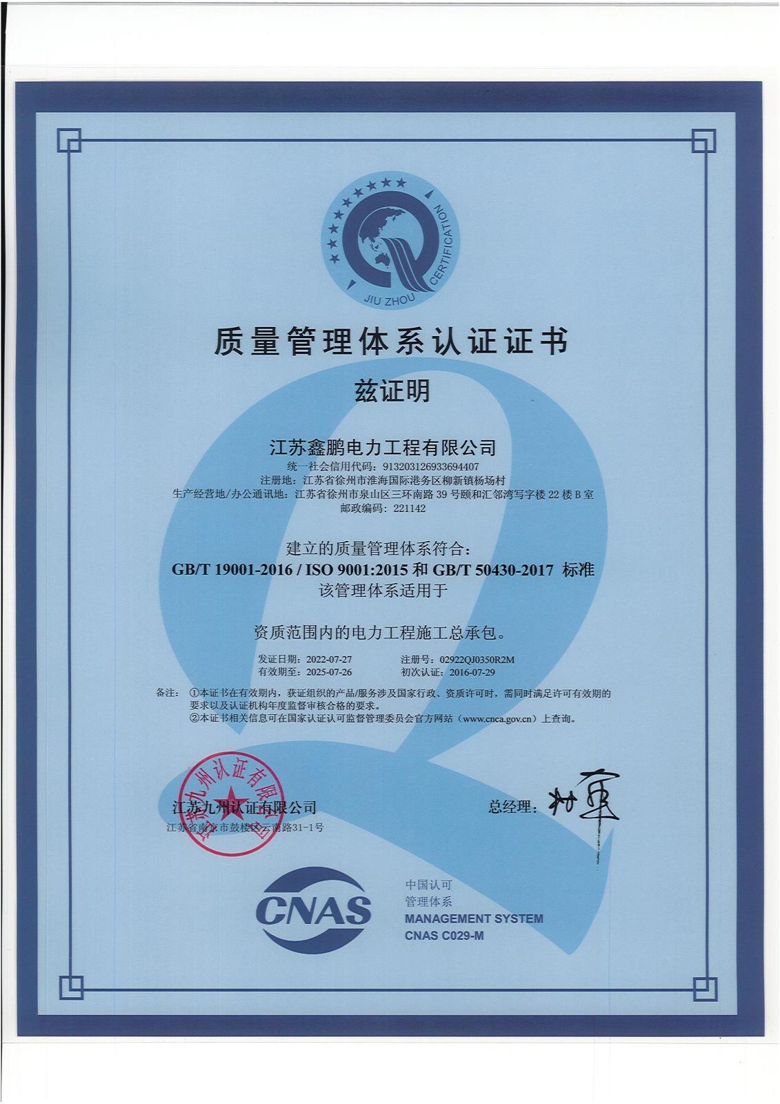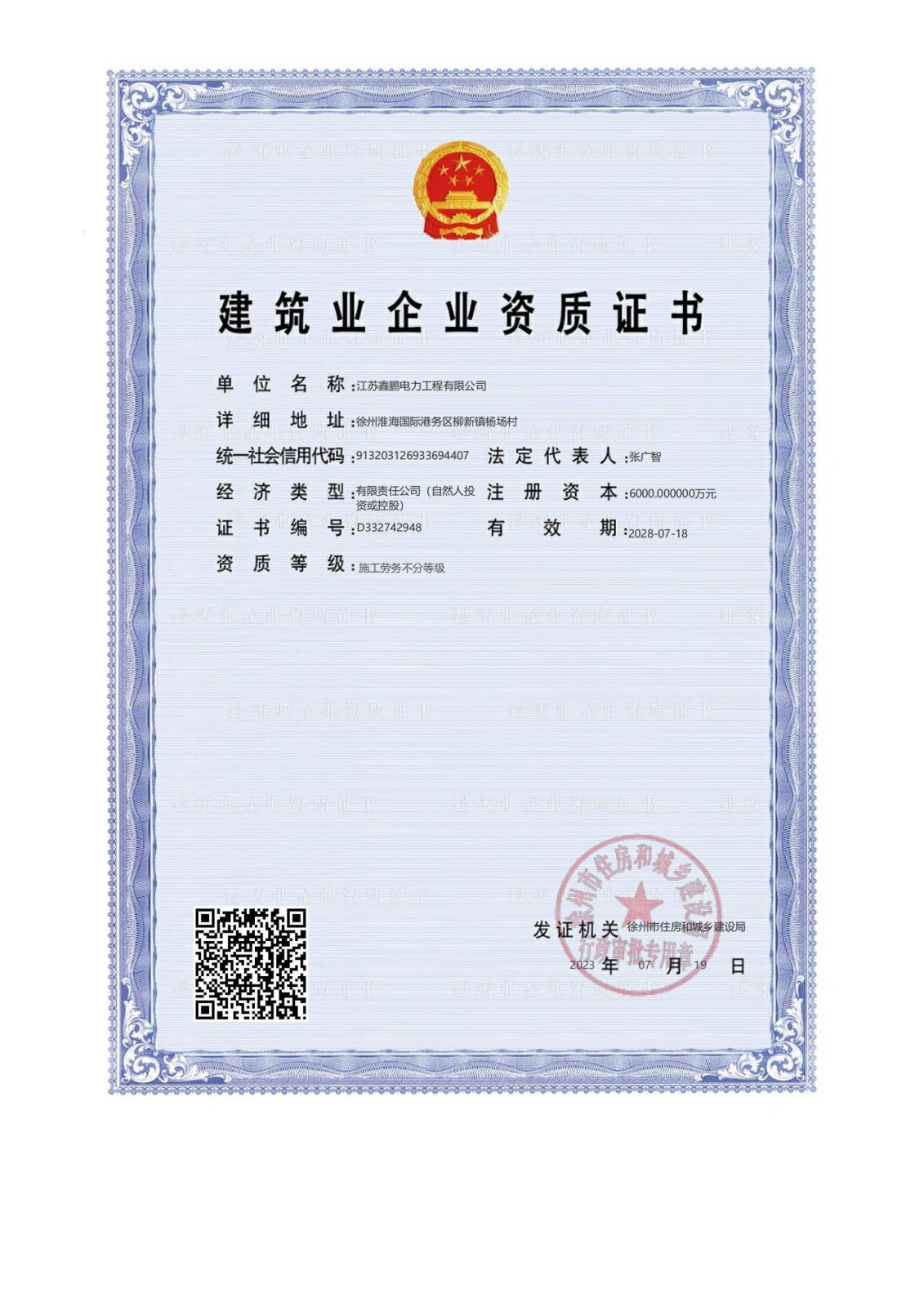江蘇鑫鵬電力工程有限公司成立于2009年,位于素有“五省通衢”之稱的“古彭”徐州。注冊資金6000萬元,占地50畝。